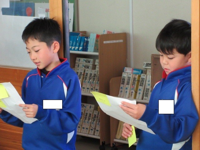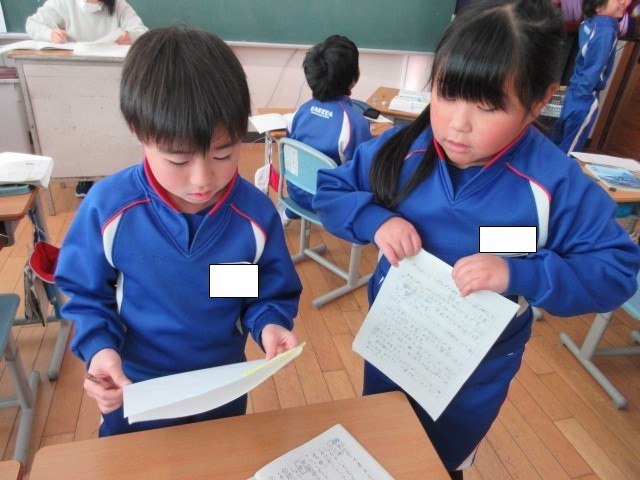 書き終わってから、友達どうしで読み合い、感想を伝え合いました。
