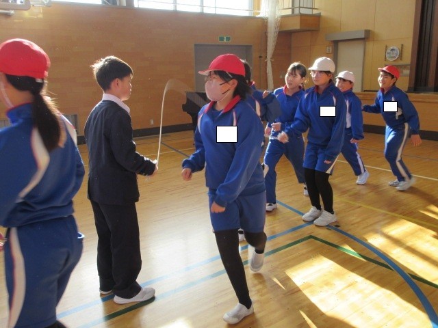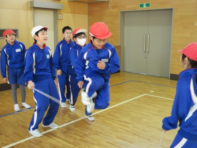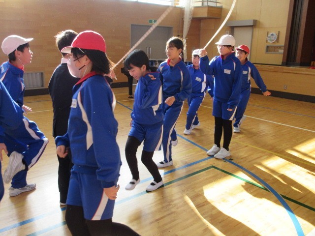 3つのチームに分かれて、3分間で何回跳べるか挑戦しました。