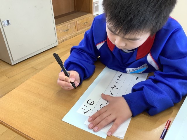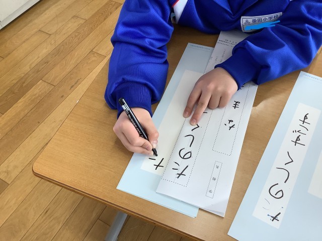 となりにお手本を置いて、一画一画丁寧に書いていました。