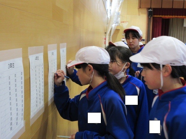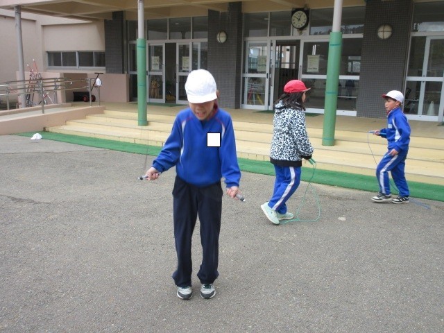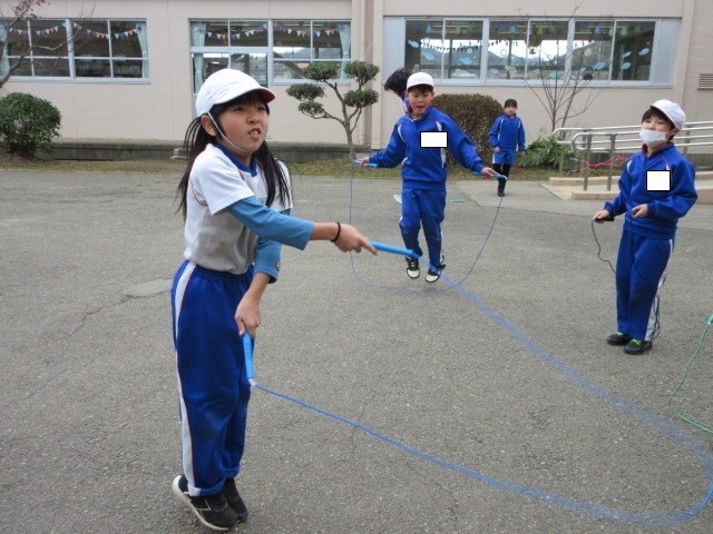 3分間で何回跳ぶことができるか長なわをがんばっている子どもたち。