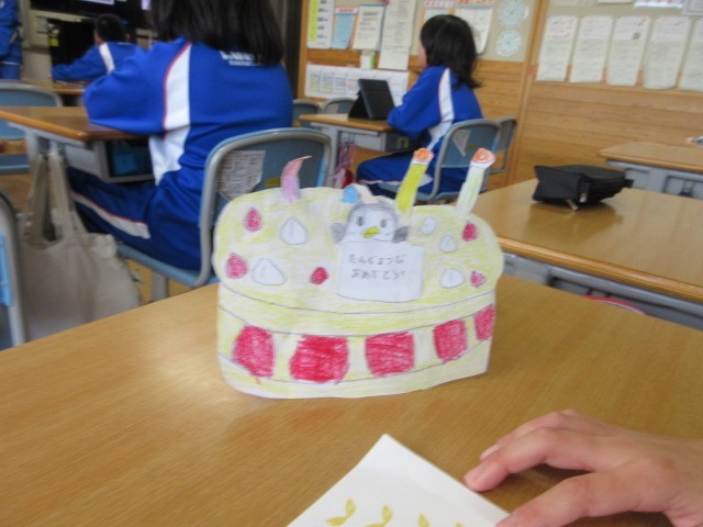 今日、誕生日だった友達にプレゼントを渡す場面もありました。
