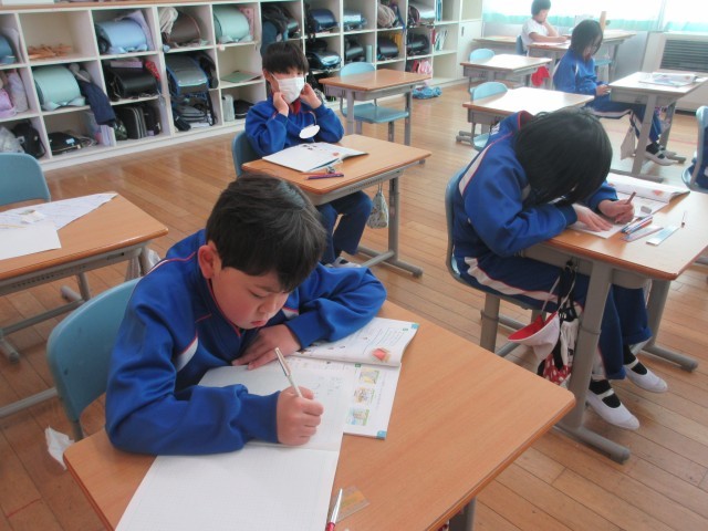 3年生の算数です。重さの計算をしていました。同じ単位どうし計算をしなければならないことに気づき、間違えないように気をつけて計算していました。