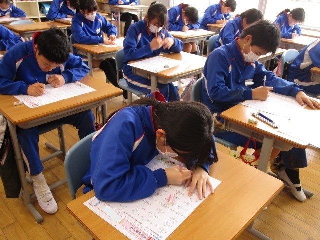 6年生は漢字のテストを行いました。2学期から冬休みにかけてテスト範囲の練習をしてきました。練習してきた成果が出ていたらいいですね。