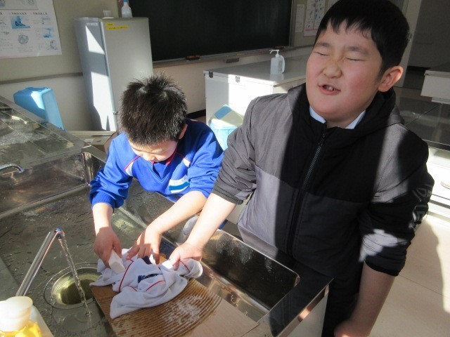 それならお洗濯をやってみよう、ということになり、家庭科室へ。