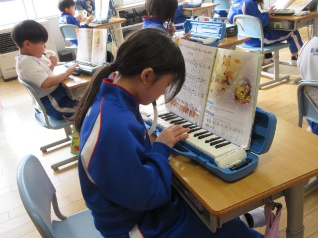 こぎつねを鍵盤ハーモニカで弾いています。