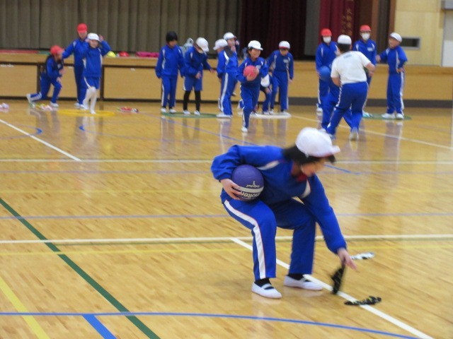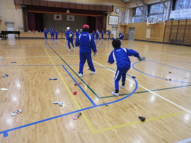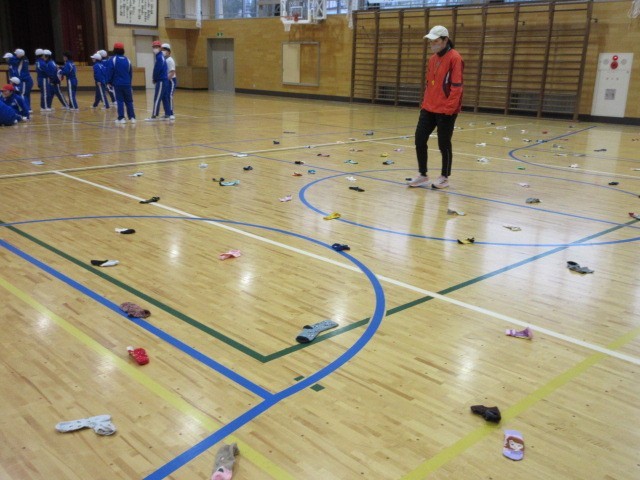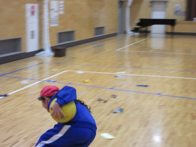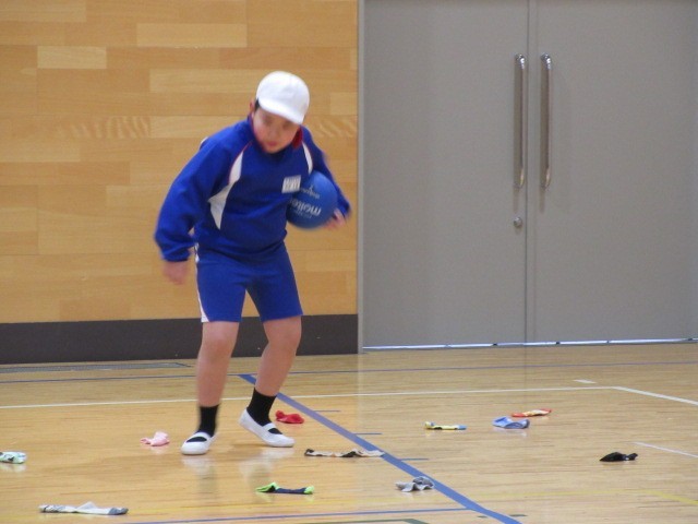 ボールがバトン代わりなので、靴下を見付けたら速く次の人にボールを渡します。