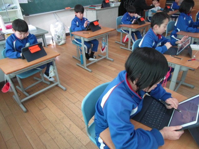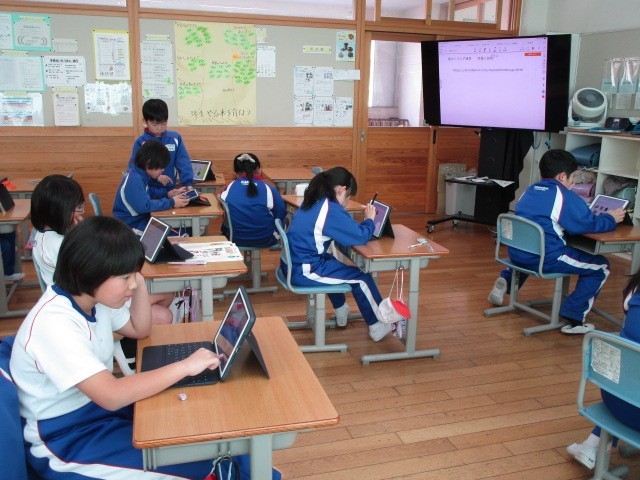 3年生の総合です。昔のくらしや道具について調べました。道具の名前をローマ字入力で記入しました。