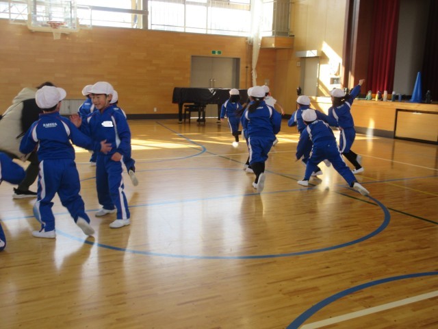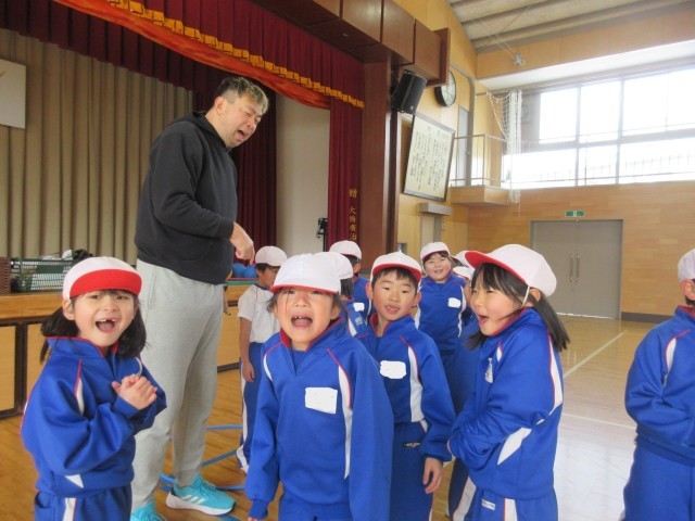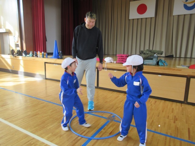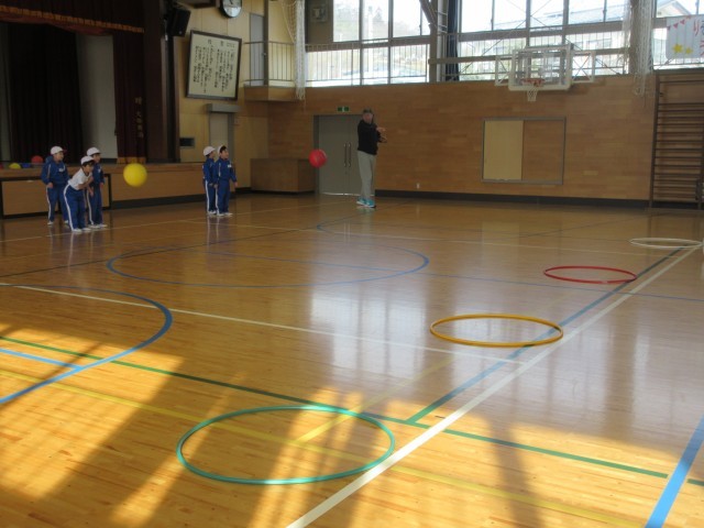 1年生も大内コーチの話をよく聞きながら、フラフープやボールを使ってたくさん身体を動かしました。
