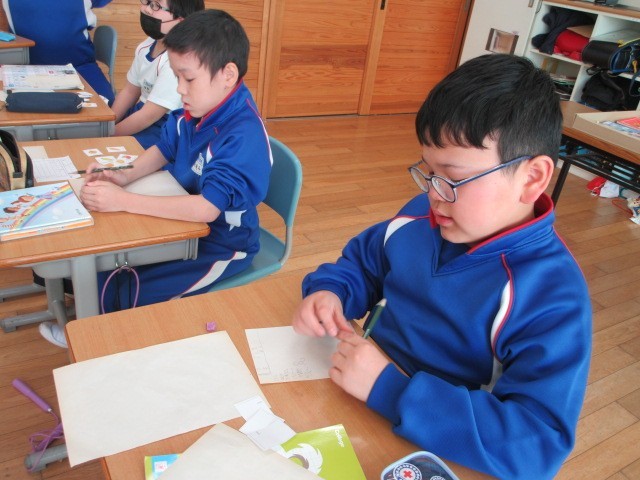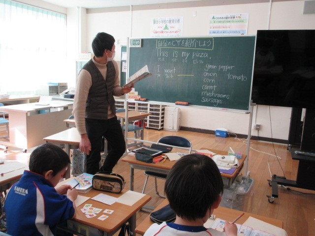 ピザの材料を考え、英語で自分のピザを紹介する学習です。