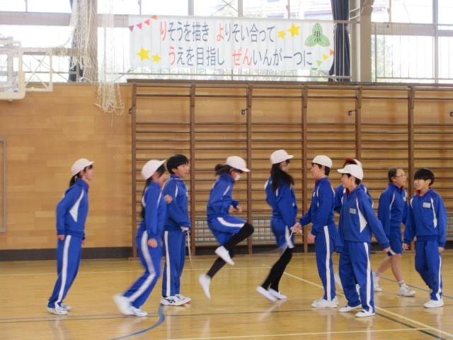 なわとび記録会に向けて、持久跳び、種目跳び、長縄の練習をしました。