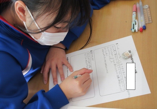 子どもたちは、自分の気持ちをワークシートに書いたり、
