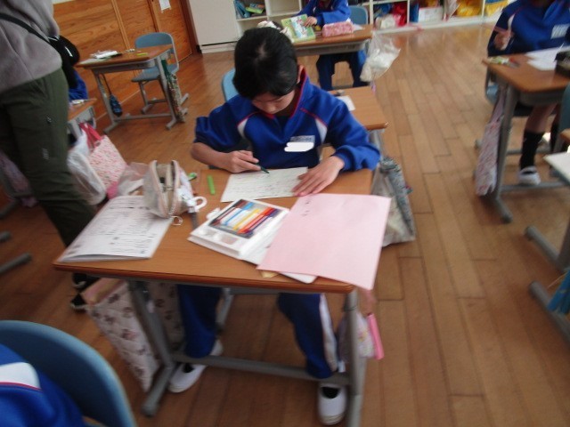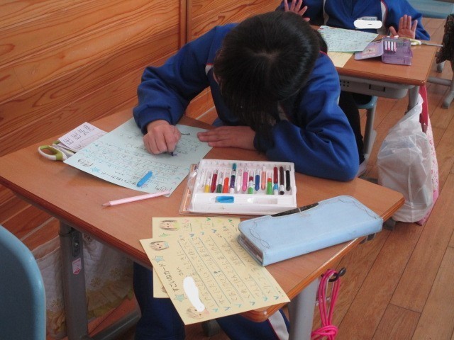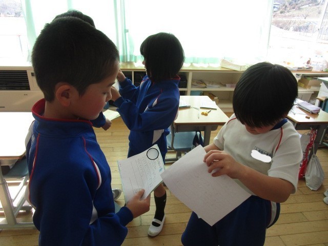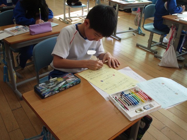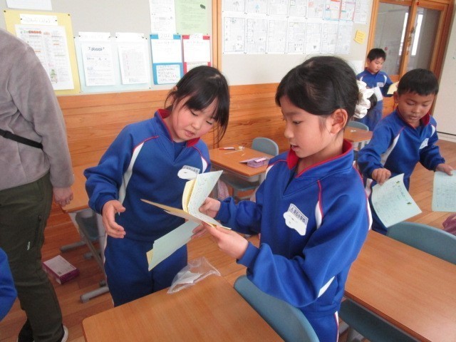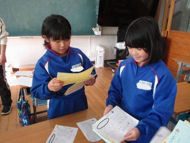 2年生の生活科です。友だちのよいところをカードに書き、交換しました。