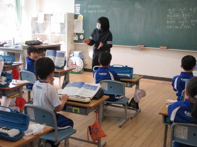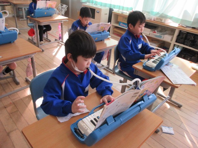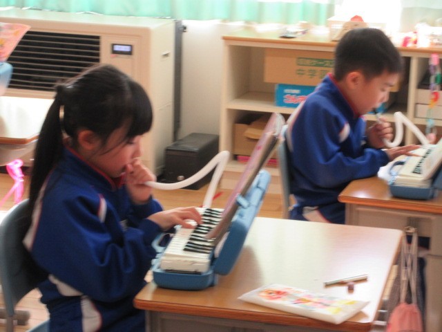 鍵盤ハーモニカでみんなで曲を演奏しました。