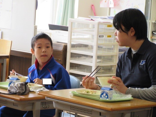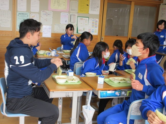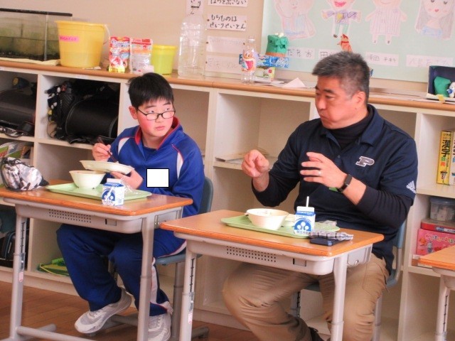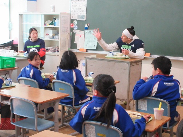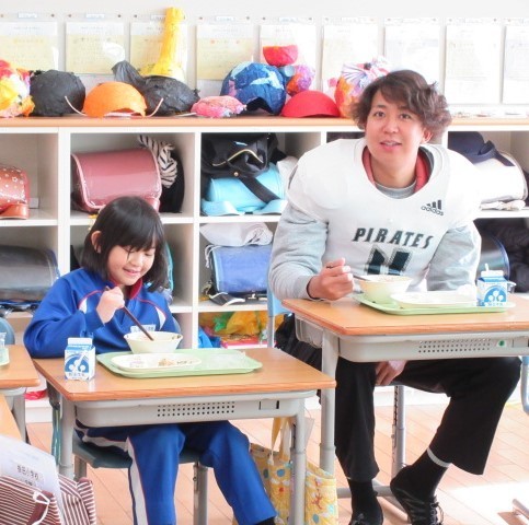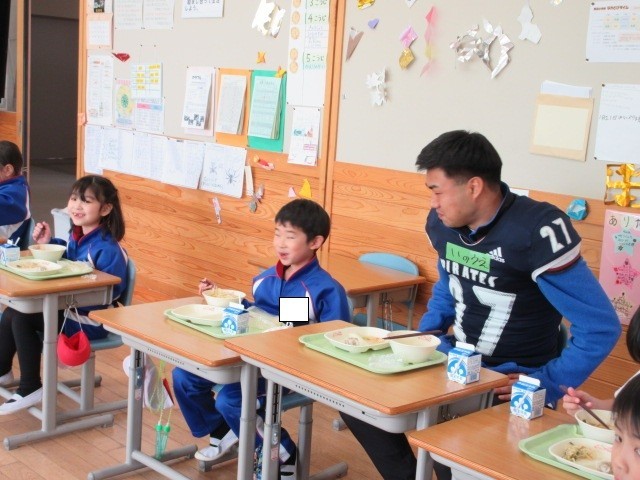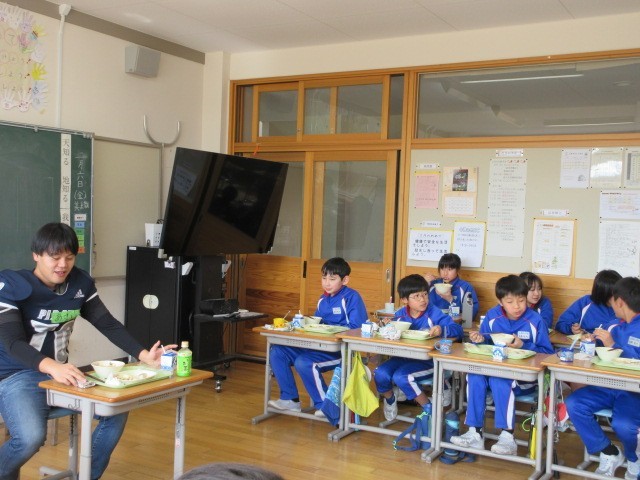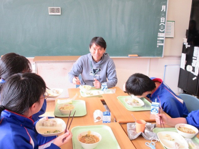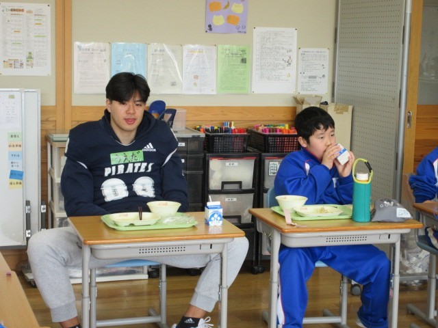 給食もコーチや選手のみなさんと楽しく食べました。