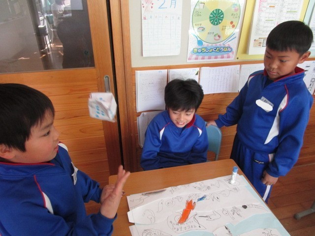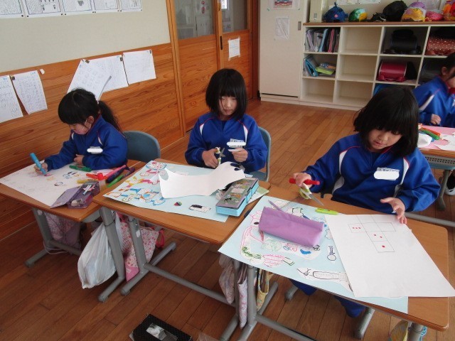 2年生の生活です。がんばったことやできるようになったことをすごろくにしました。つくり終わったら、友達と一緒にすごろくをやっていました。