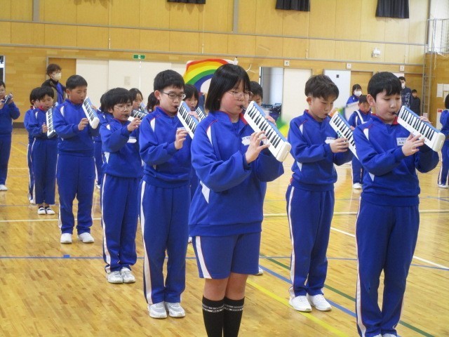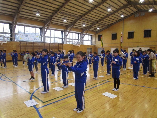4・5年生が鼓笛移杖式前、最後の全体練習を行いました。指揮者をみながら校歌とミッキーマウスマーチを全員で合わせました。