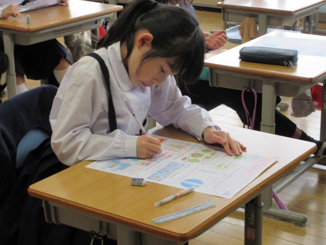今日は、学習した内容のテストを行いました。