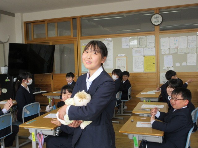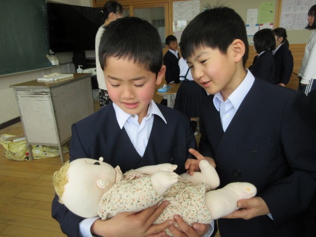 大川レディースクリニックの庵原順子助産師さんを講師にお招きし、2年生と5年生で「いのちの授業」が行われました。2年生は、「おへその秘密」5年生は、「おなかの中で育つ命」について学習しました。学習の最後には、新生児と同じ大きさの赤ちゃん人形をだっこし、命の重さを実感していました。