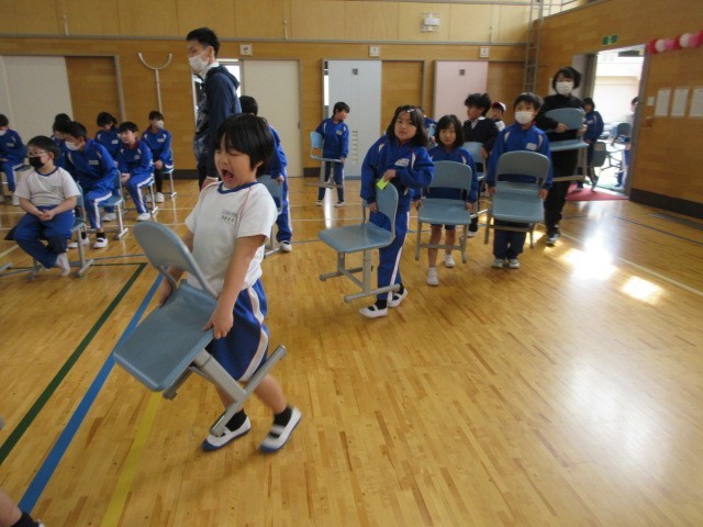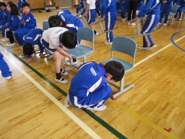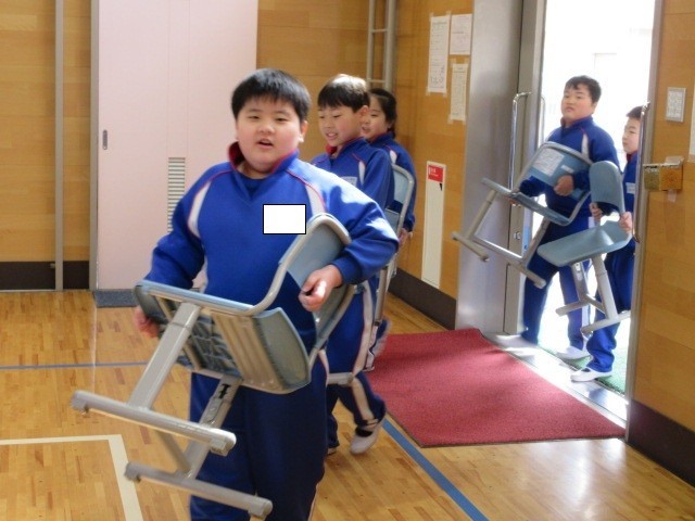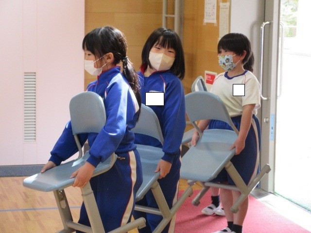 教室から自分で椅子を運び、前回印をつけた場所に並べました。
