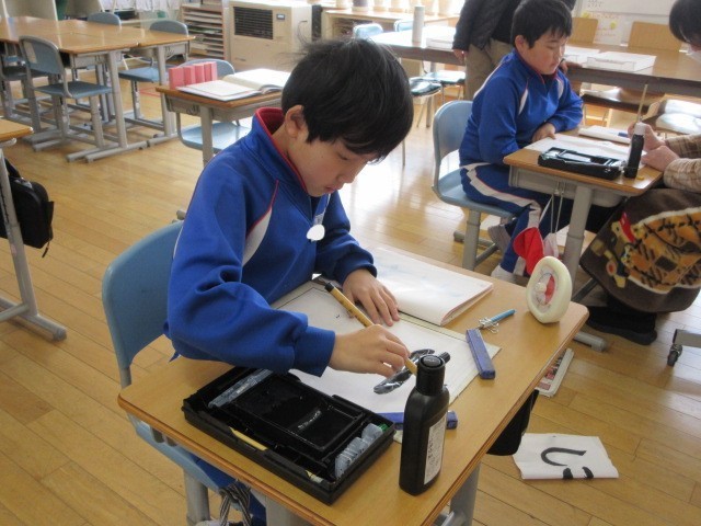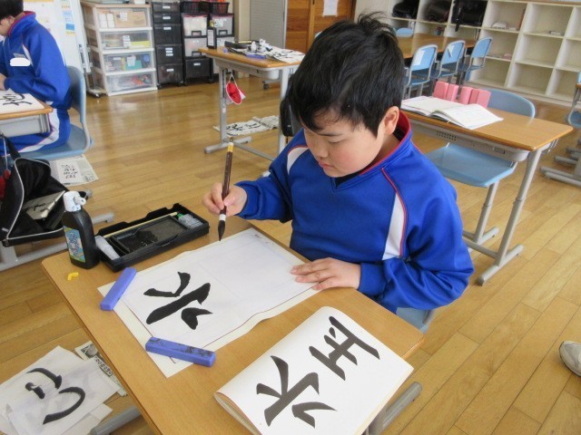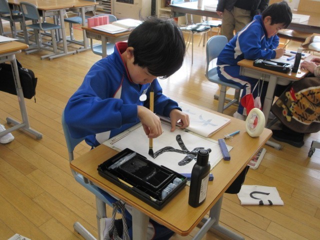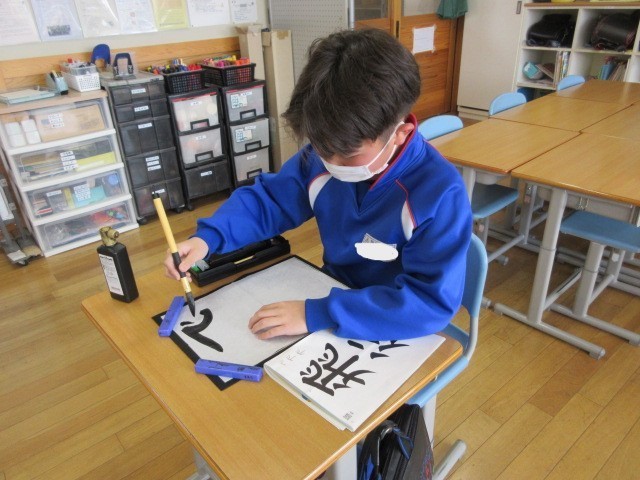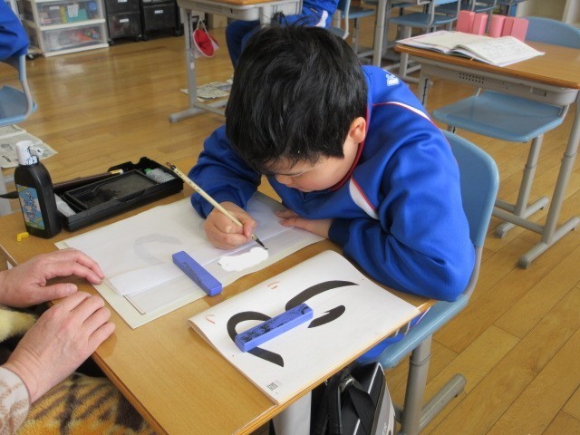 くわのみ1組さんは毛筆をやっていました。それぞれの課題や自分の名前を丁寧に書いていました。
