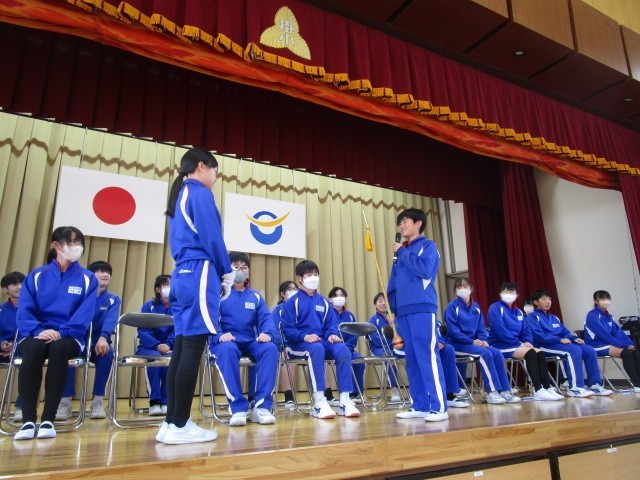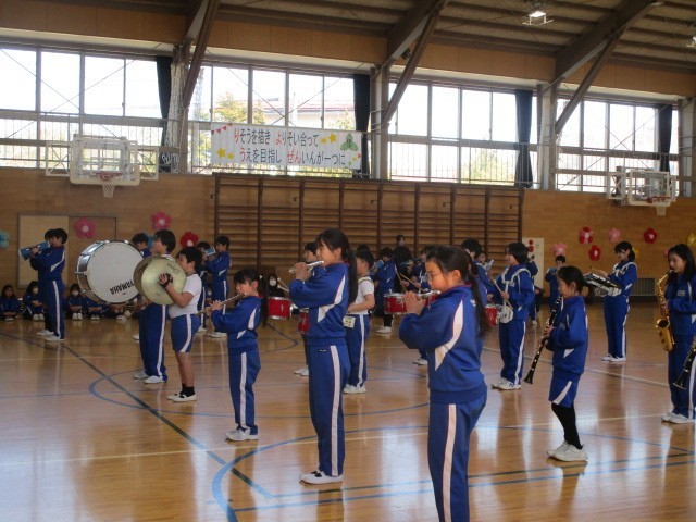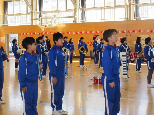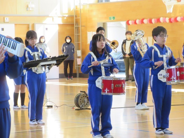 現・主指揮の児童から、新・主指揮の児童へ、移杖の言葉がかけられたあと、新鼓笛隊の演奏が行われました。