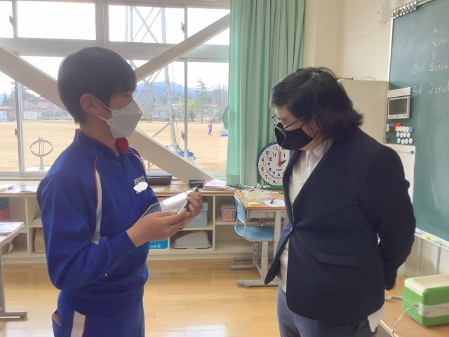 6年生の外国語です。今日は小学校で最後のALTとの授業だったので、お礼の言葉を自分で考え、英語で伝えました。