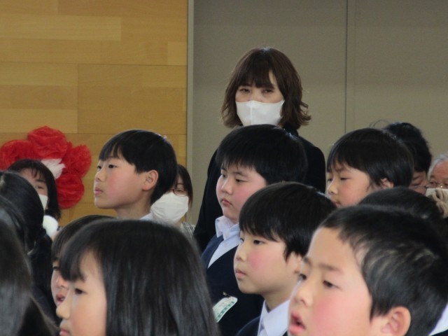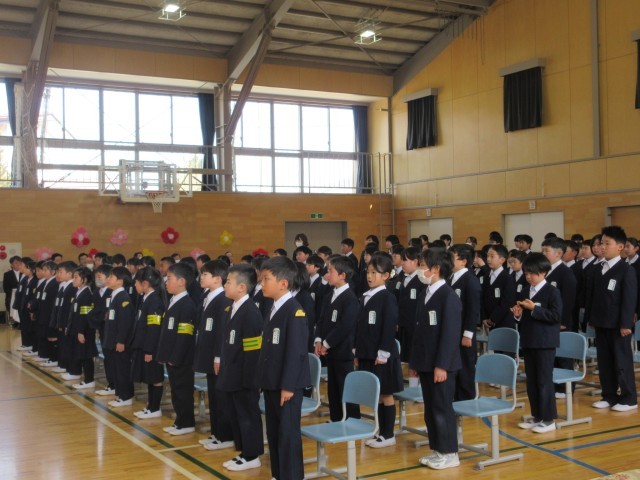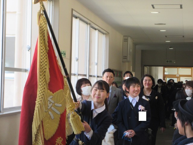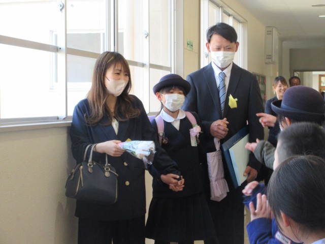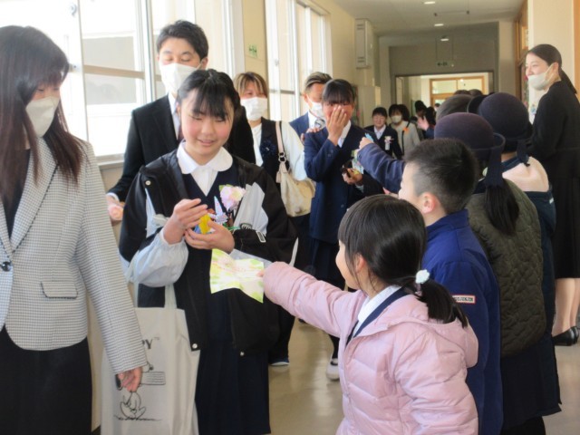 子どもたちは、在校生に見送られ、笑顔で掛田小学校を卒業していきました。