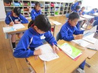 3年生の総合的な学習では、「天蚕の会」の菅野様、八島様を講師にお招きして養蚕について学びました。蚕の繭から作られた絹製品や、蚕の標本など貴重な資料を見せていただいたり、かつての日本の産業を支えた養蚕の歴史や、掛田が養蚕の中心であったことなど、分かりやすく教えていただいたりしました。子どもたちは、最後まで集中して興味深く学ぶことができました。菅野様、八島様、ありがとうございました。