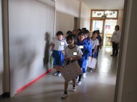 図書室から教室に戻る2年生の様子です。きちんと整列をして、無言で教室に戻りました...