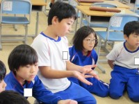 くわのみの4年生の外国語活動の様子です。好きなものを答える言い方を学習しました。