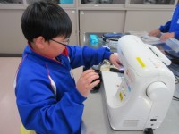 5年生の様子です。ミシンで真剣にトートバッグを作っている子どもたち。友達と協力し...