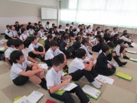 6年生の学活です。修学旅行に向けての話がありました。修学旅行の目的や2日間の行程...