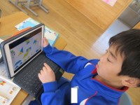 1年生の算数科の学習の様子です。4枚の色板でどんな形ができるかをタブレットを使っ...
