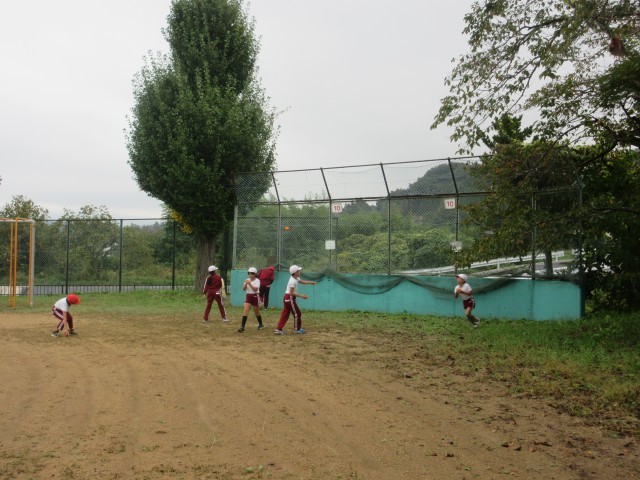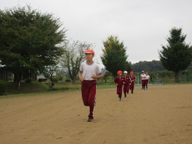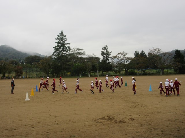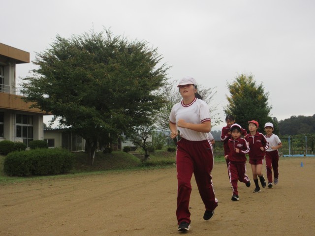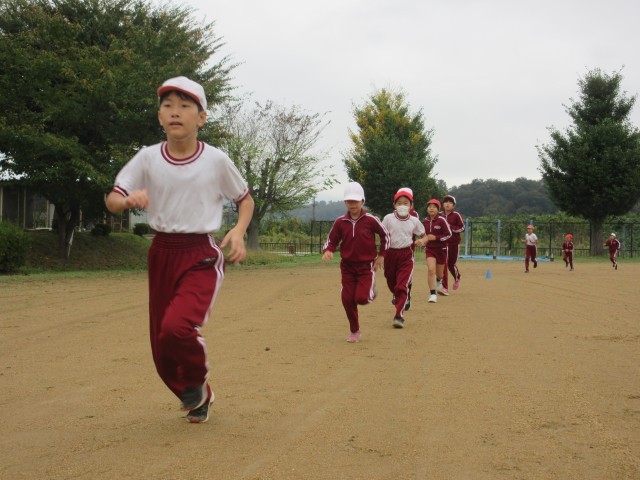 今日の朝は曇り空でしたが、校庭で運動することができました。
