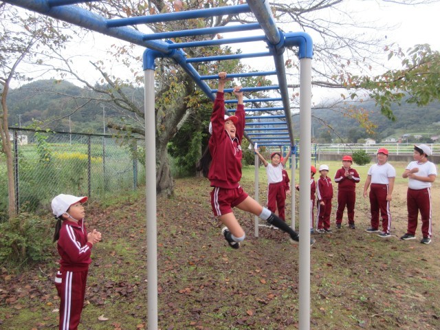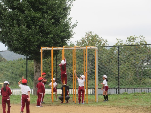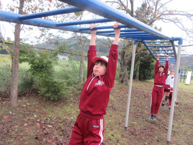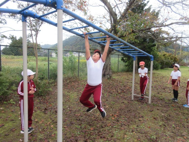 ブラジル体操、校庭2周、うんていやボール投げ、のぼり棒などに取り組みました。