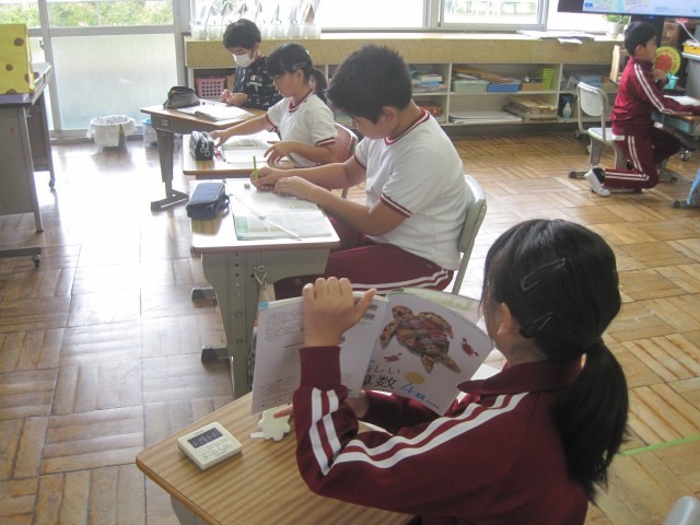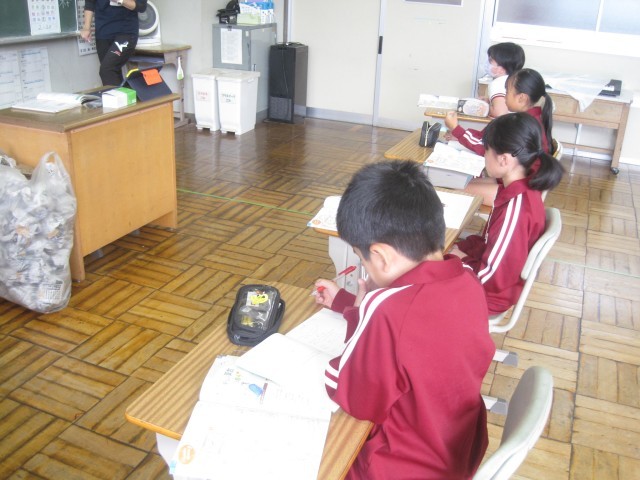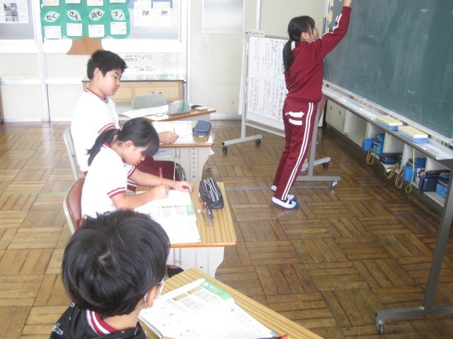 3年生は、担任の先生と一緒に学習しているのに対して、4年生は、学習リーダーを中心に学習のめあてを確認して、課題解決に取り組み始めたところでした。