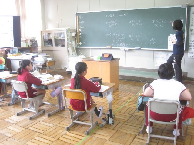 2校時、3・4年生の算数科の授業の様子です。学習発表会の練習期間ではありますが、落ち着いて学習に取り組んでいました。