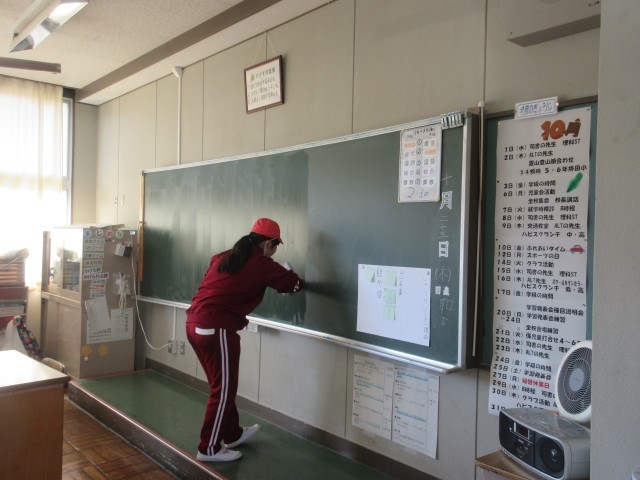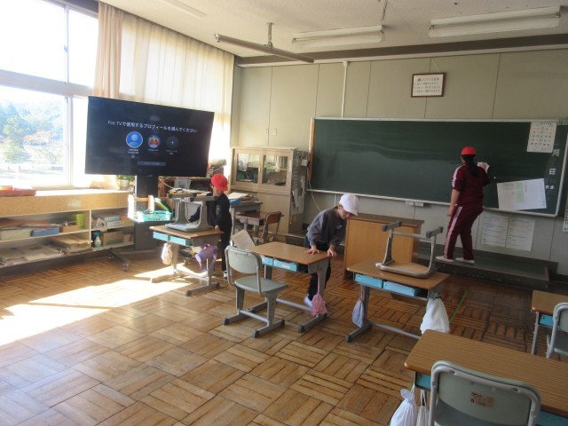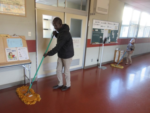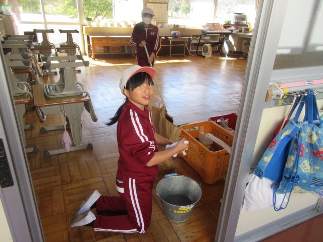 学習発表会の練習の合間に、お掃除もきちんと取り組みます。