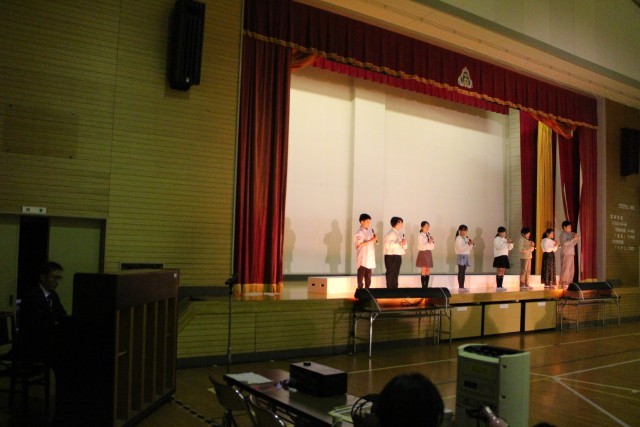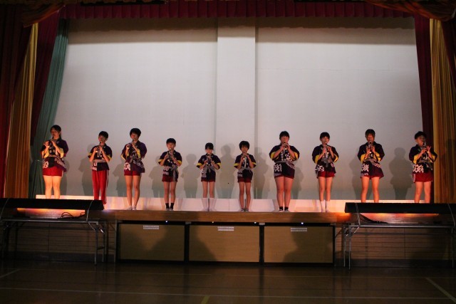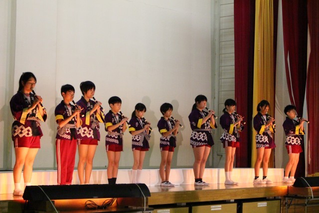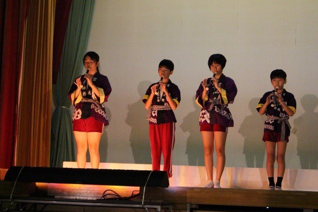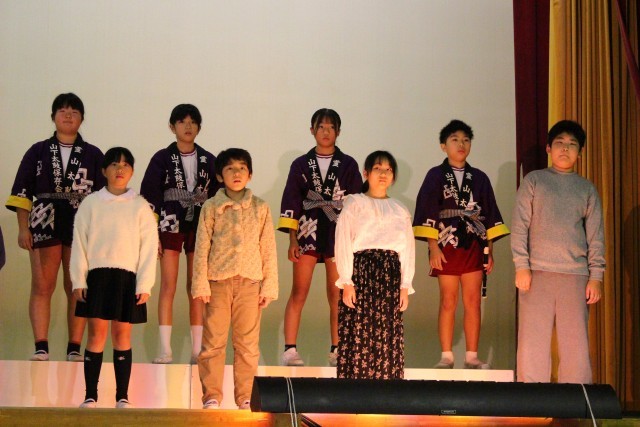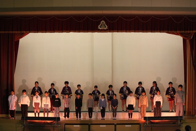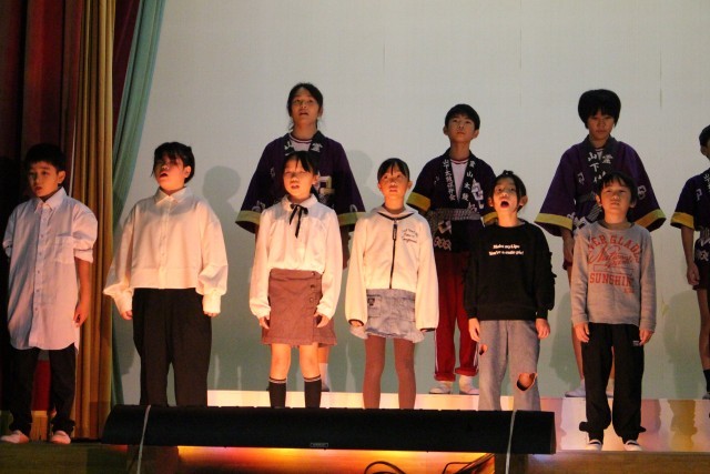 5・6年生は、音楽の授業で学習した「星笛」という曲を演奏しました。6年生が主旋律を、5年生が副旋律を担当し、2つの旋律の重なりを6拍子にのってきれいに演奏しました。