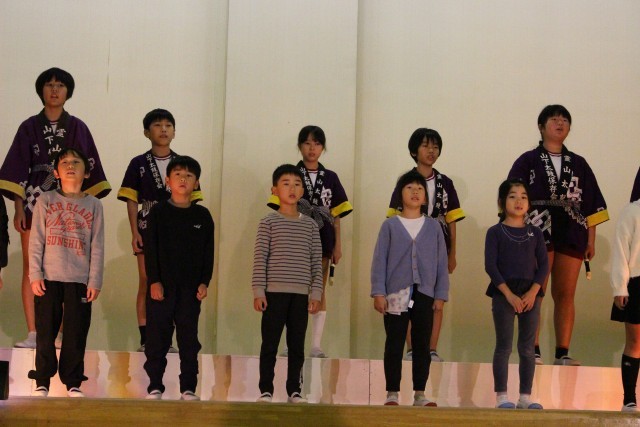 3・4年生は、音楽の授業で挑戦した「世界の約束」を演奏しました。昨年度の地区音楽祭でも演奏した難しい曲ですが、頑張って練習に取り組み、上手に演奏できました。