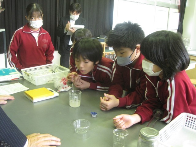 今週の月曜日、本校教員の研修として「第2回校内授業研究会」を行いました。本校の全教員のほか、中学校理科の先生にもお出でいただき、5年生の理科の授業参観をとおして、「問いを引き出す課題設定」をはじめ、「主体的・対話的な課題解決を促す学習形態」、「次時につながる振り返り」等を検証しました。子どもたちは、授業の導入で授業者が行った演示実験に興味関心を高め、その後の実験に意欲的に取り組み、物がとける量には限界があることを理解できたようです。