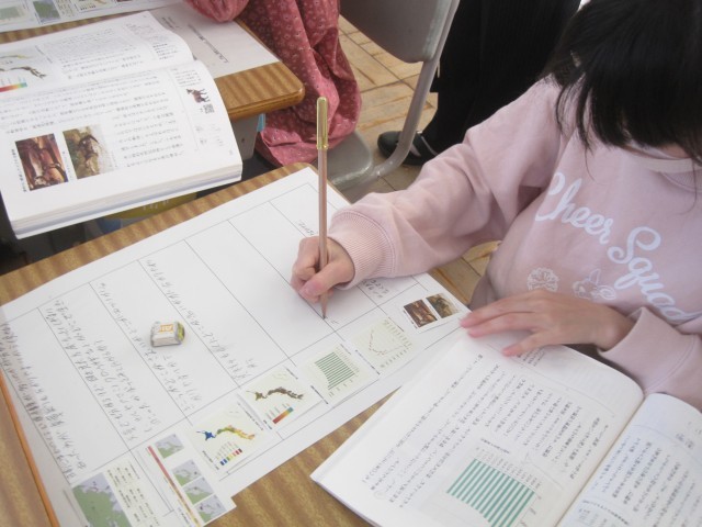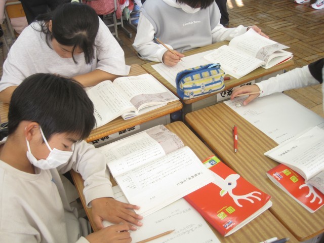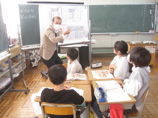 先週金曜日の5校時は、3校時の3・4年生に続いて、5・6年生の複式指導による国語科の授業研究会を行いました。今年度最後の授業研究会ということで、県北教育事務所より指導主事の先生にも参観していただいたほか、近隣の小中学校の先生にも参加していただき、本校教員の授業力向上を目的に開催しました。