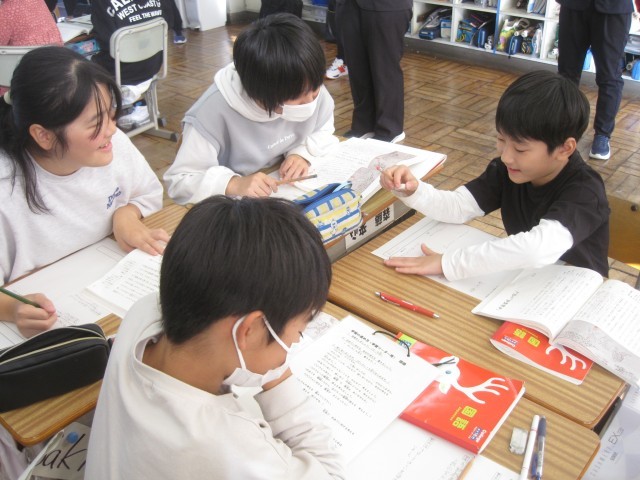 5学年と6学年それぞれが説明文の教材を用いて、読み手を引きつける筆者の表現の工夫を見つけたり、その効果を考えたりしました。学習リーダーを中心に互いの考えを交流し合いながら、話合いを深めている様子が見られた授業でした。
