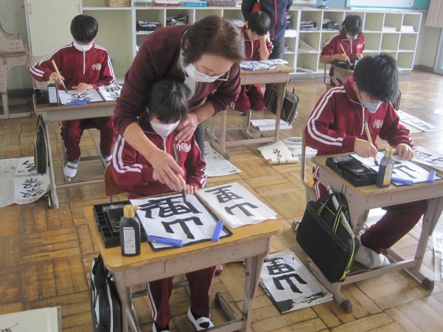 かきぞめ展に向けて~毛筆指導(5・6学年)~