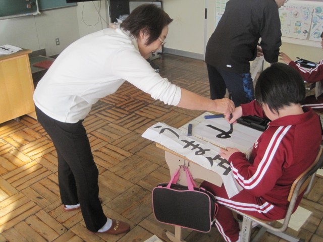 本日も特別非常勤の先生においでいただき、2・3校時に書写の学習を行いました。
