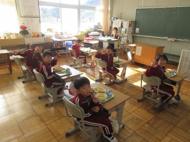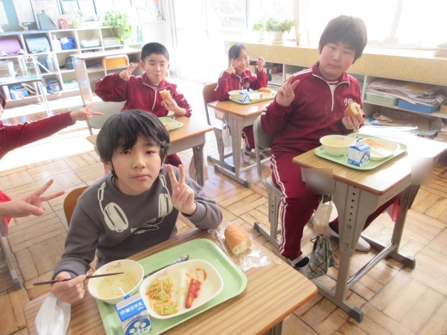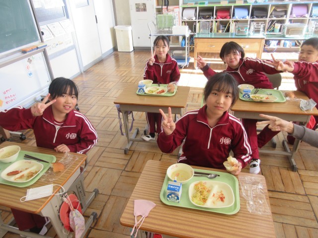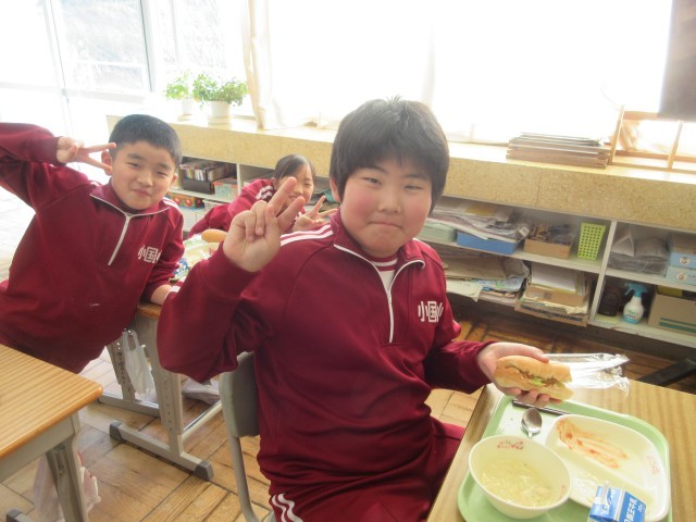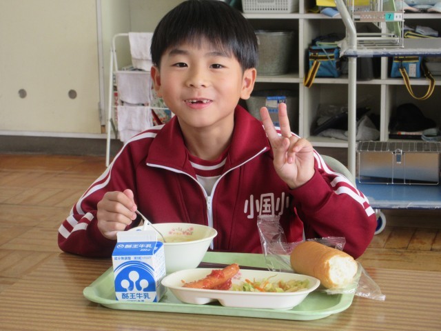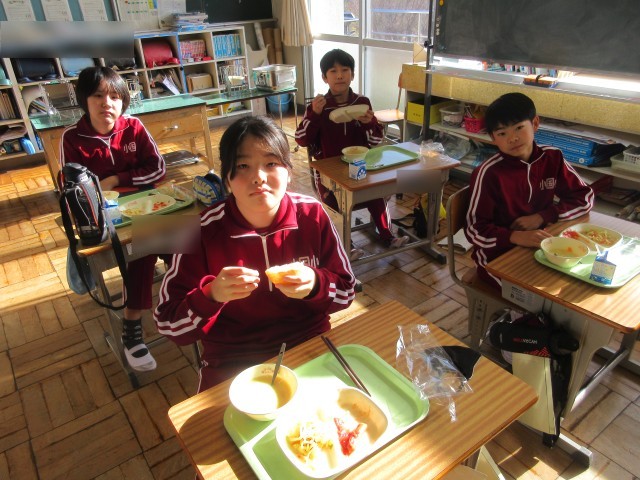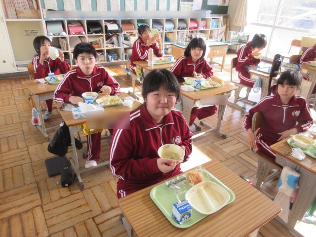 給食の放送では、リクエスト曲の「かもつれっしゃ」が流れました。