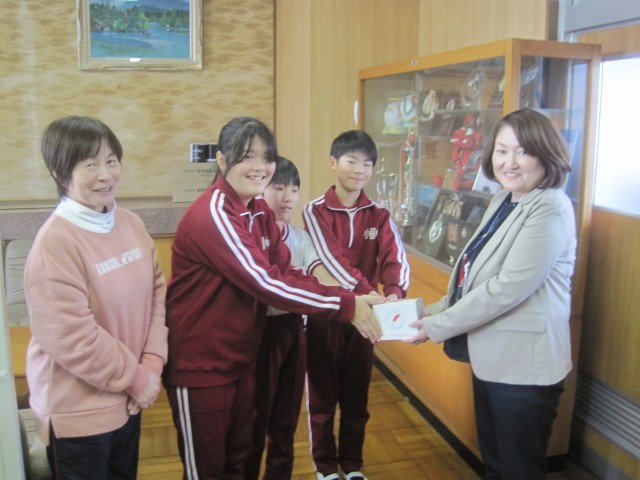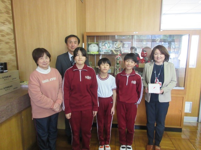 本日の昼休みに伊達市社会福祉協議会地域福祉係の職員の方が来校され、児童代表の6年生が課長様へお渡ししました。