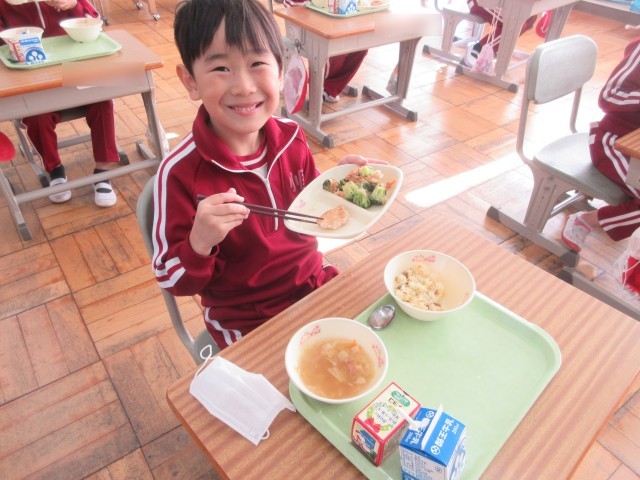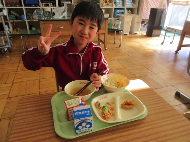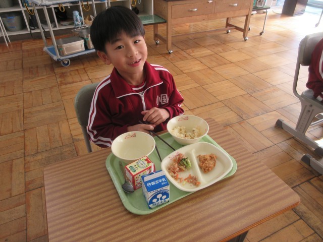給食の様子を1・2年生はひとりひとり写真を撮ってほしいとのことでしたので、撮りました。
