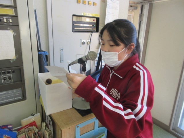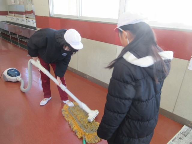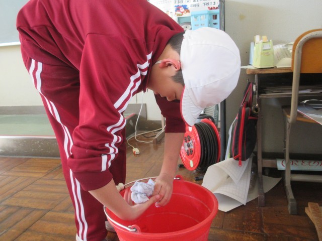 最後のお掃除だったので、健康運動委員会の児童に、「みんなで学校をきれいにしましょう」と放送で声をかけてもらいました。