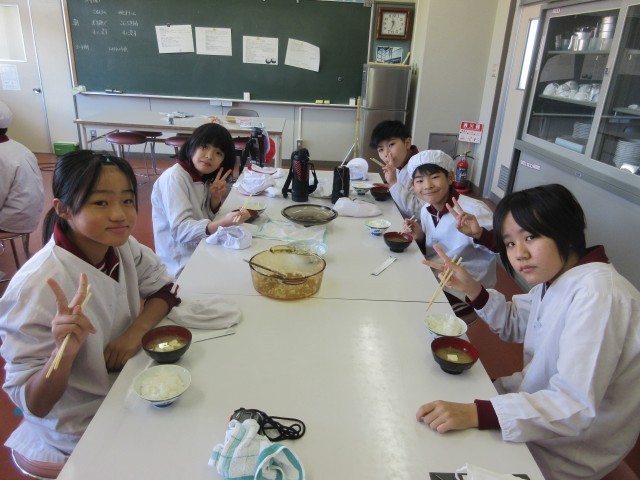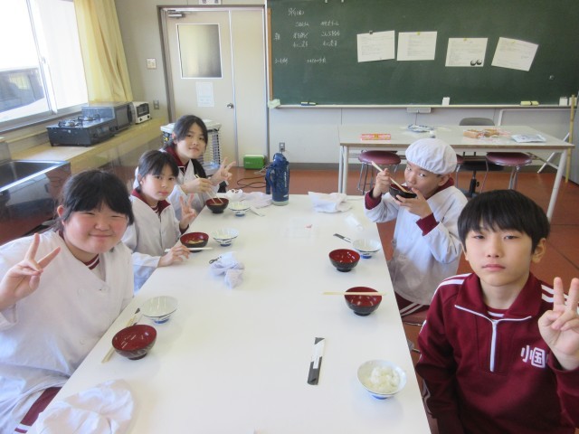 5・6年生が収穫していただいた「小国米」を使って、炊飯の実習をしました。新米をさらに美味しく炊き上げるために、調べたことをもとにしながら実習に取り組んでいました。併せて、味噌汁も作っていました。